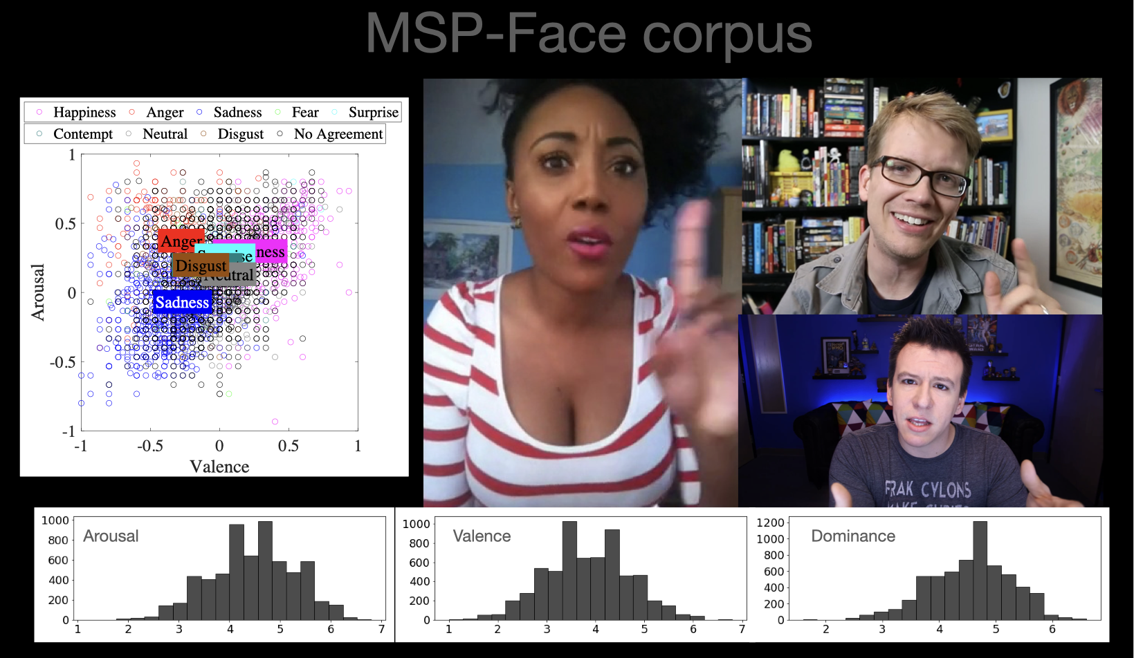 A feature of the corpus is the addition of two sets. The first set includes videos that have been annotated with emotional labels using a crowd-sourcing protocol 9,370 recordings (24 hrs, 41 mins). The second set includes similar videos without emotional labels, offering the perfect infrastructure to explore semi-supervised and unsupervised machine-learning algorithms on natural emotional videos. This set has 15,011 recordings (38 hrs, 3 mins).