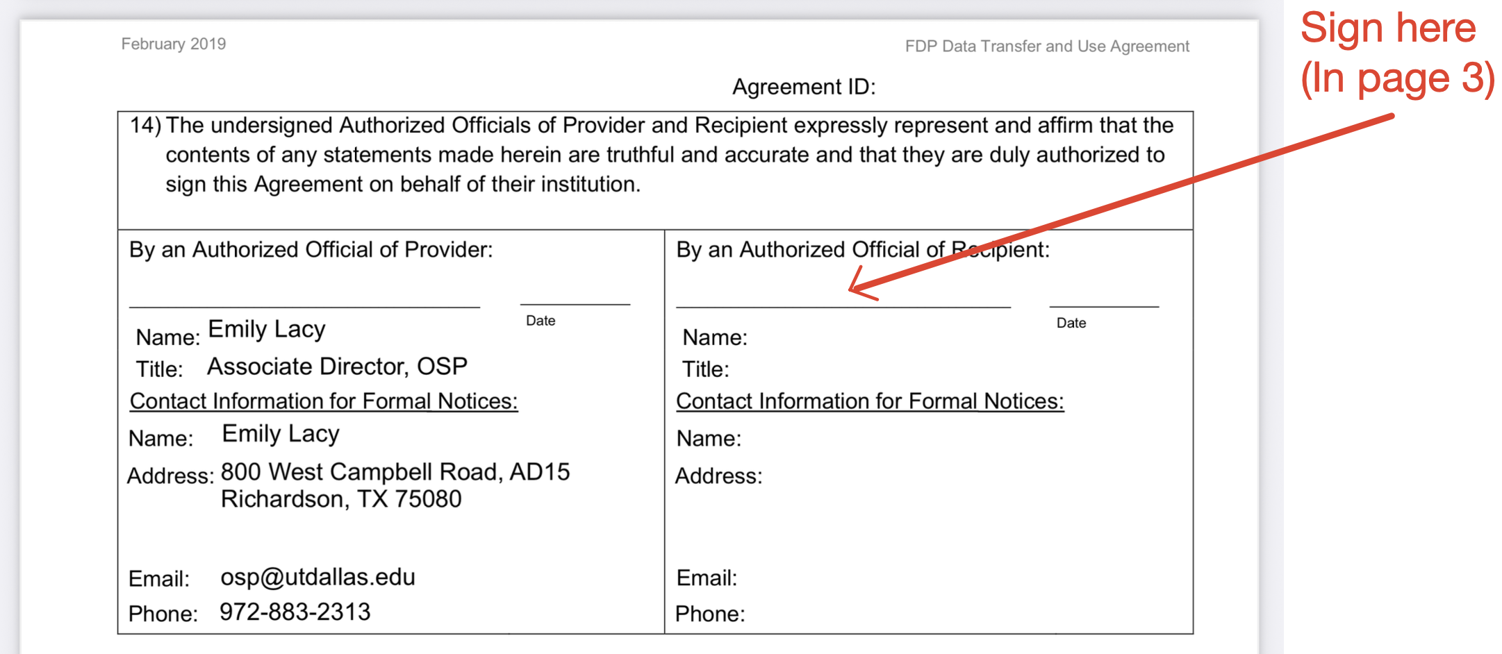 - Sign the 3rd page of the pdf, as shown in the image below. Send the signed form to Prof. Carlos Busso